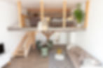 Die Wohnung 4 im Innenhof ist etwas Besonderes. Im Wohnraum mit 5 m Deckenhöhe war noch Platz für eine große Schlafgalerie. Hier oben schläft man wunderbar in einem superbequemen Boxspringbett. Die Küche, eine Treppe nach unten, ist komplett eingerichtet mit Backofen, Kühlschrank und Geschirrspüler. Das moderne Bad mit großer Dusche liegt ebenfalls im Tiefgeschoss. Im Sommer kann man im Innenhof sehr schön frühstücken. Die Wohnung ist vom DTV mit 4 Sternen bewertet.